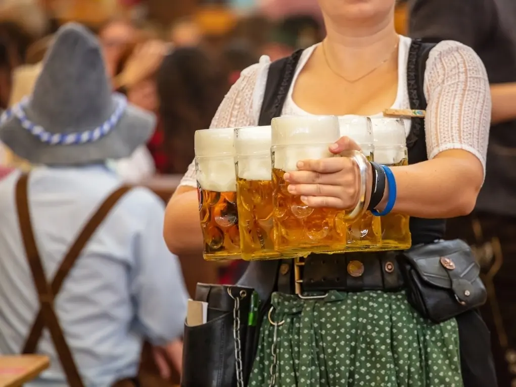 Tham dự Oktoberfest Munich 2025, nâng cốc bia khổng lồ và thưởng thức ẩm thực Bavaria.